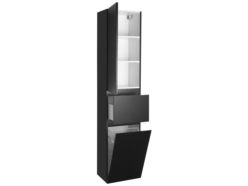 ALTAIR vysoká skříňka s košem 40x184x31cm, černá mat, levá