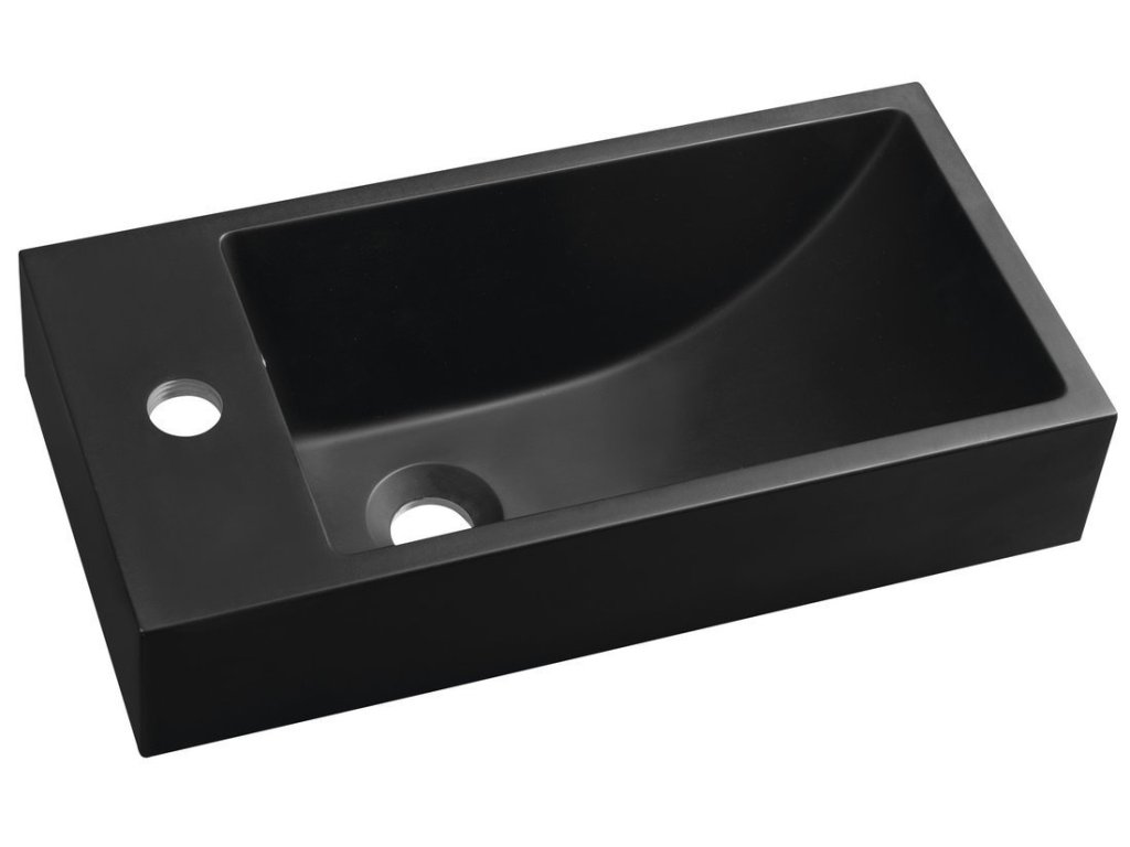 ARIANA umývátko, litý mramor, 50x25cm, baterie vlevo, černá mat