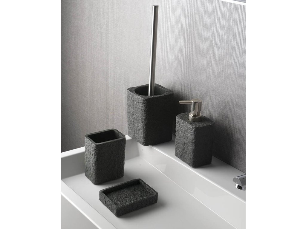 ARIES - série koupelnových doplňků na postavení vyrobených z polyresinu s imitací kamene.