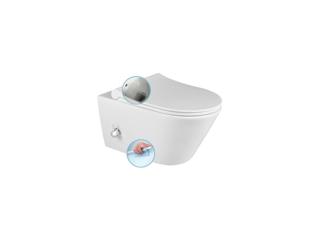AVVA CLEANWASH závěsná WC mísa, integrovaná baterie a bidet. sprška, Rimless, 35,5x53cm, bílá
