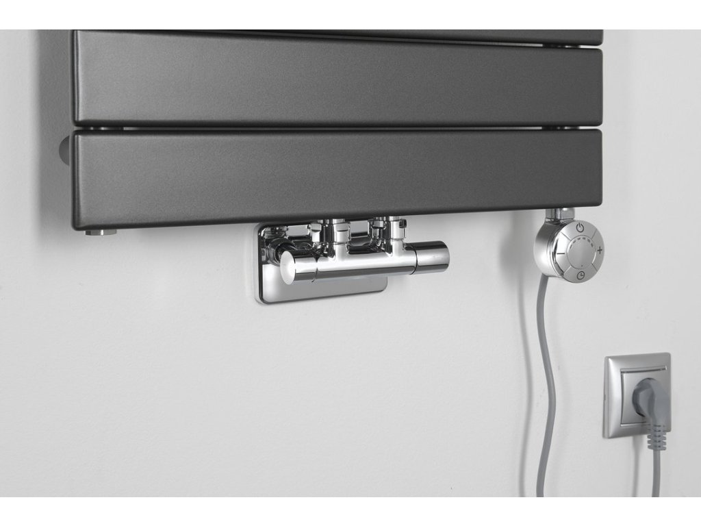 Stylový radiátor z hladkých zaoblených ocelových profilů s praktickým středovým připojení s roztečí 50 mm a zároveň otvory se záslepkou ve svislých kolektorech umožňují kombinované zapojení elektrické topné tyče nebo stranové připojení.