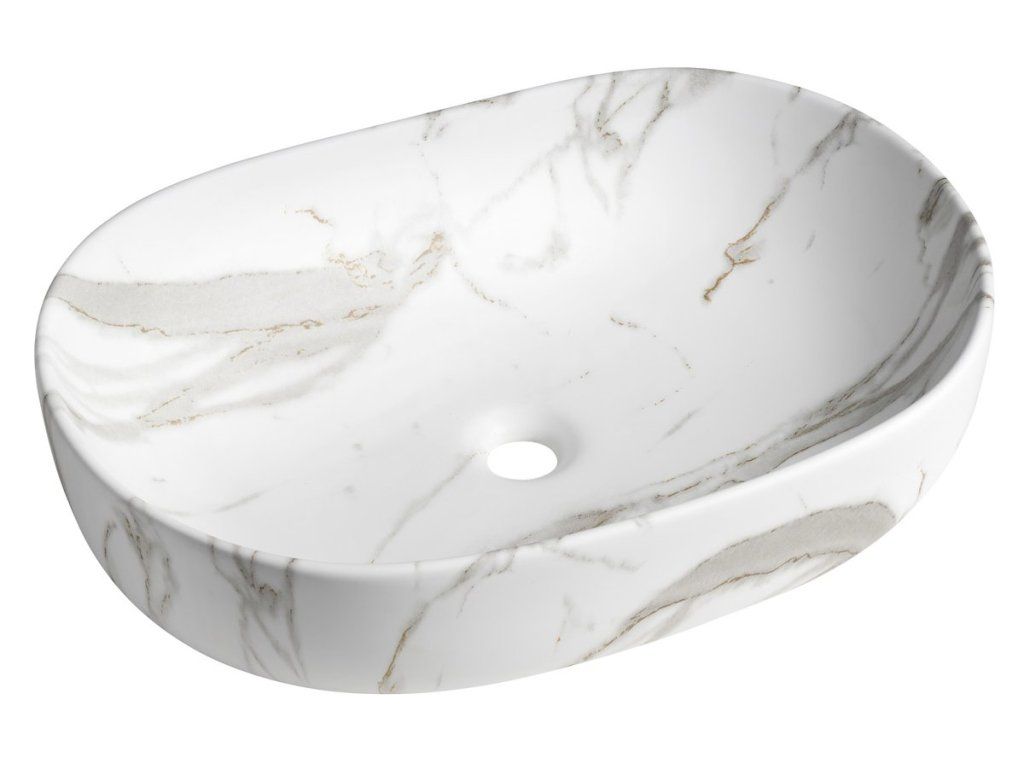 CALEO keramické umyvadlo na desku, 60x42cm, bianco carrara