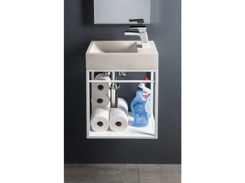 Konstrukce: lakovaná ocel, polička: lamino tl. 12 mm, bílá mat.