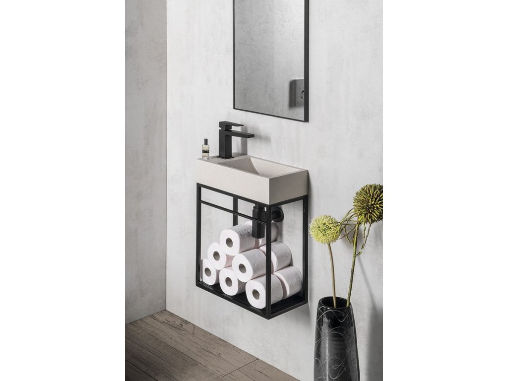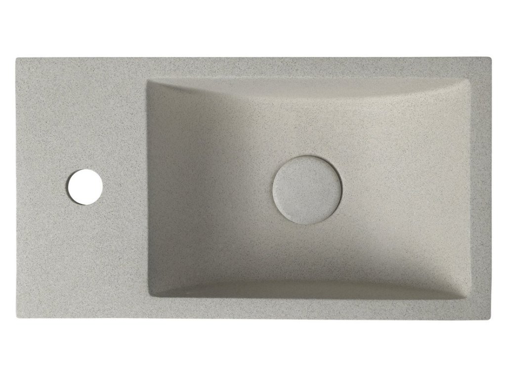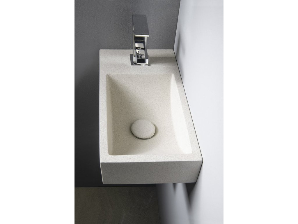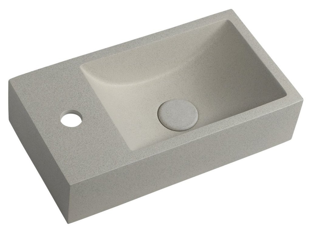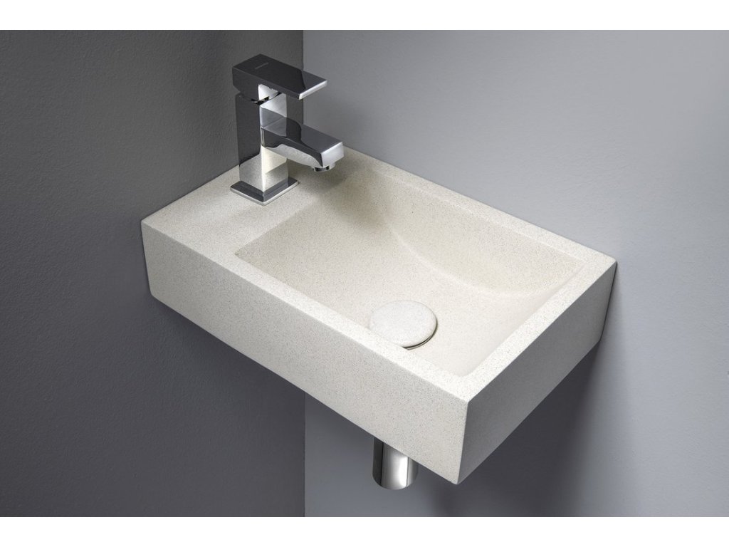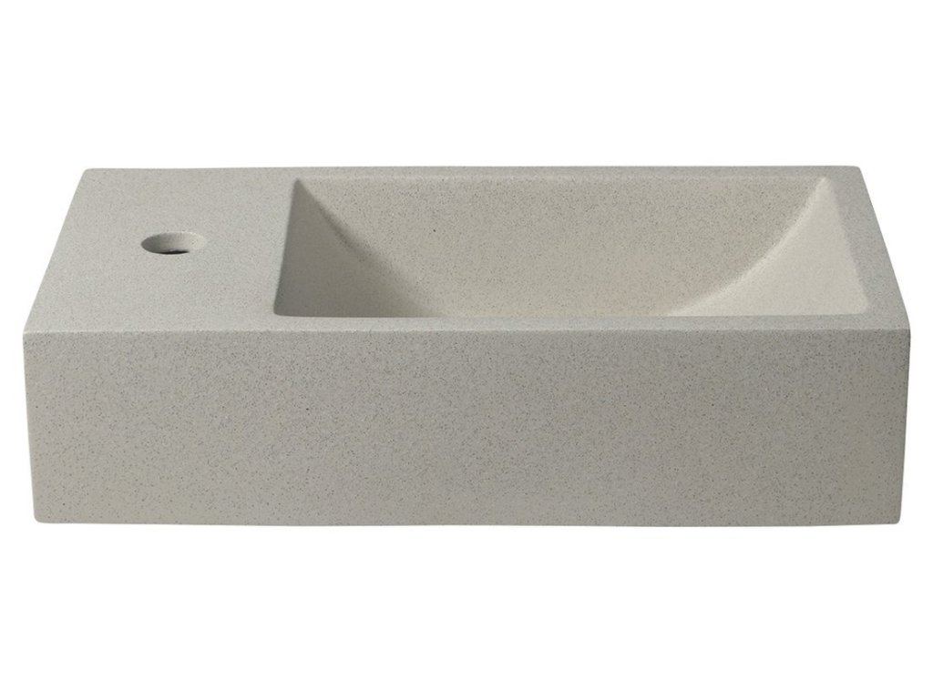 CREST L betonové umývátko, nástěnné, včetně výpusti, 40x22cm, bílý pískovec