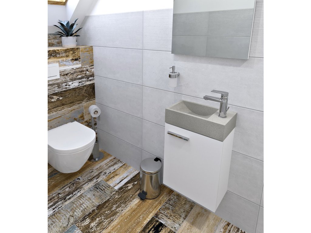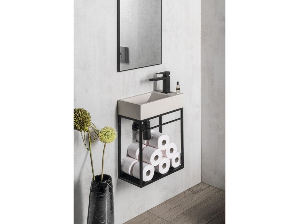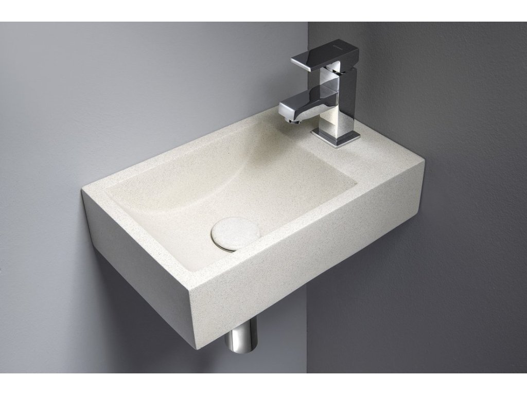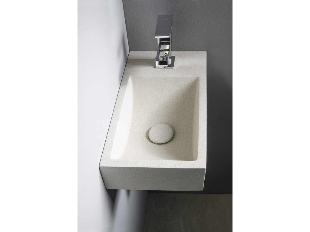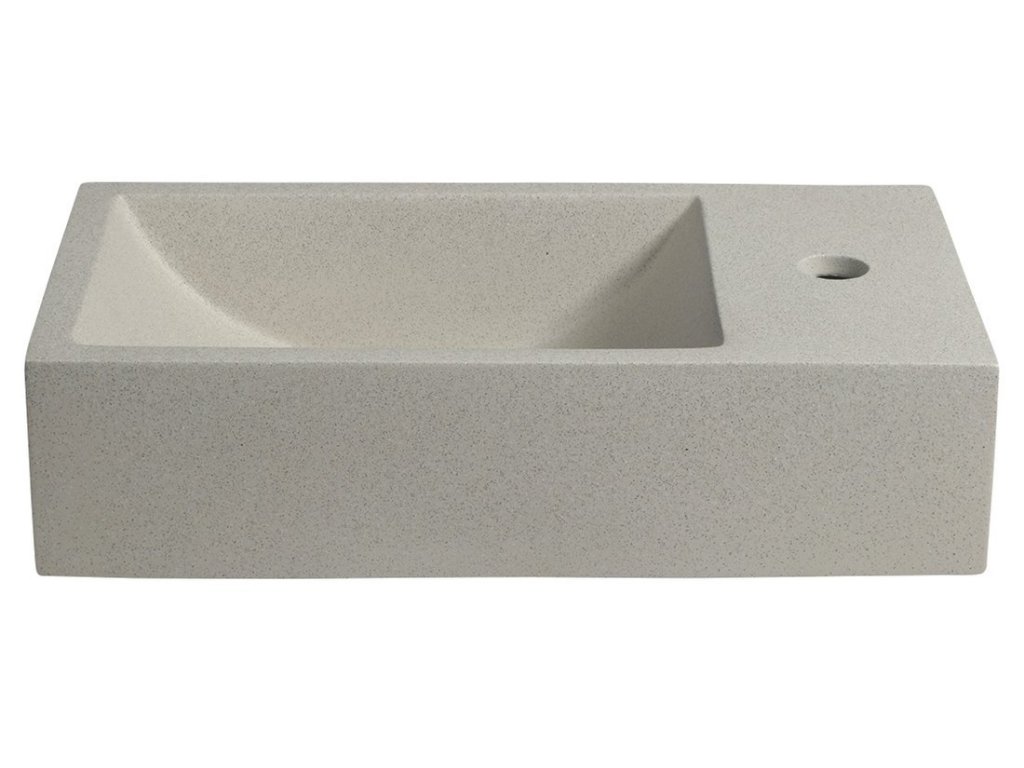 CREST R betonové umývátko, nástěnné, včetně výpusti, 40x22cm, bílý pískovec
