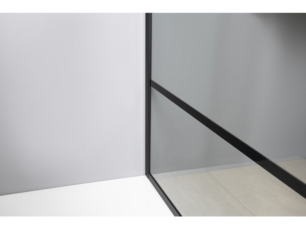 Z vnější strany je sklo orámováno černým matným rámem a opticky rozděleno vodorovnými profily na 4 okna. Zástěny o šířkách 1200 a 1400 mm jsou navíc opatřeny svislým profilem, takže zástěna je rozdělena na 8 tabulek. Z vnitřní strany je zástěna dokonale hladká a pro snadnou údržbu ošetřena povrchovou úpravou Coated Glass. Všechny zástěny lze navíc doplnit o pevný přídavný panel.