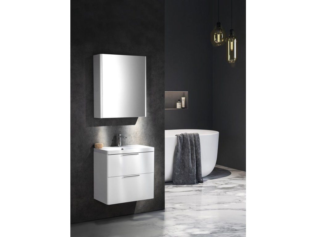 Zrcadlové skříňky DENEB v bíle matném provedení se zaoblenými rohy korespondují s designem umyvadlových skříněk DENEB, čímž výborně doplňují kolekci DENEB v ucelený set koupelnového nábytku.
