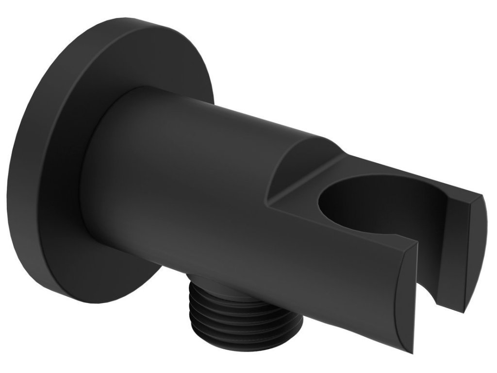 Držák sprchy kulatý, pevný, s vyústěním, černá mat