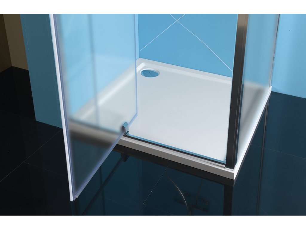 - Čtvercové zástěny s dvoudílnými posuvnými dveřmi, rohový vstup