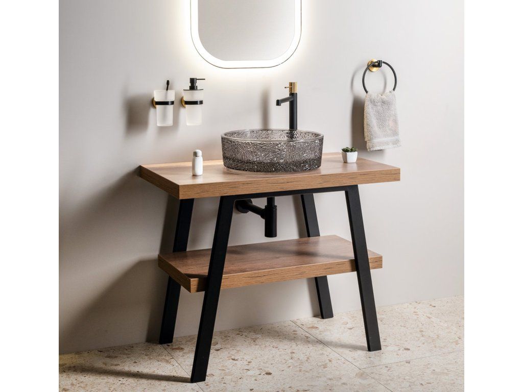 ERSEL skleněné gravírované umyvadlo na desku Ø 39,5cm, černá