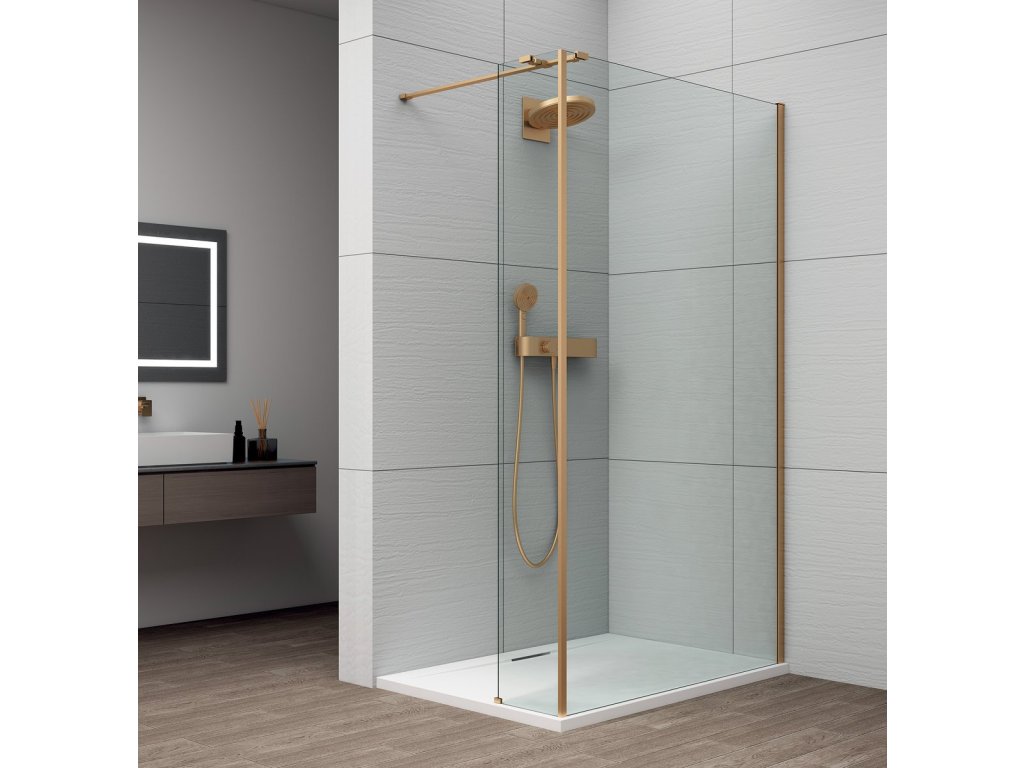 ESCA GOLD MATT jednodílná sprchová zástěna k instalaci ke stěně, sklo čiré, 700 mm