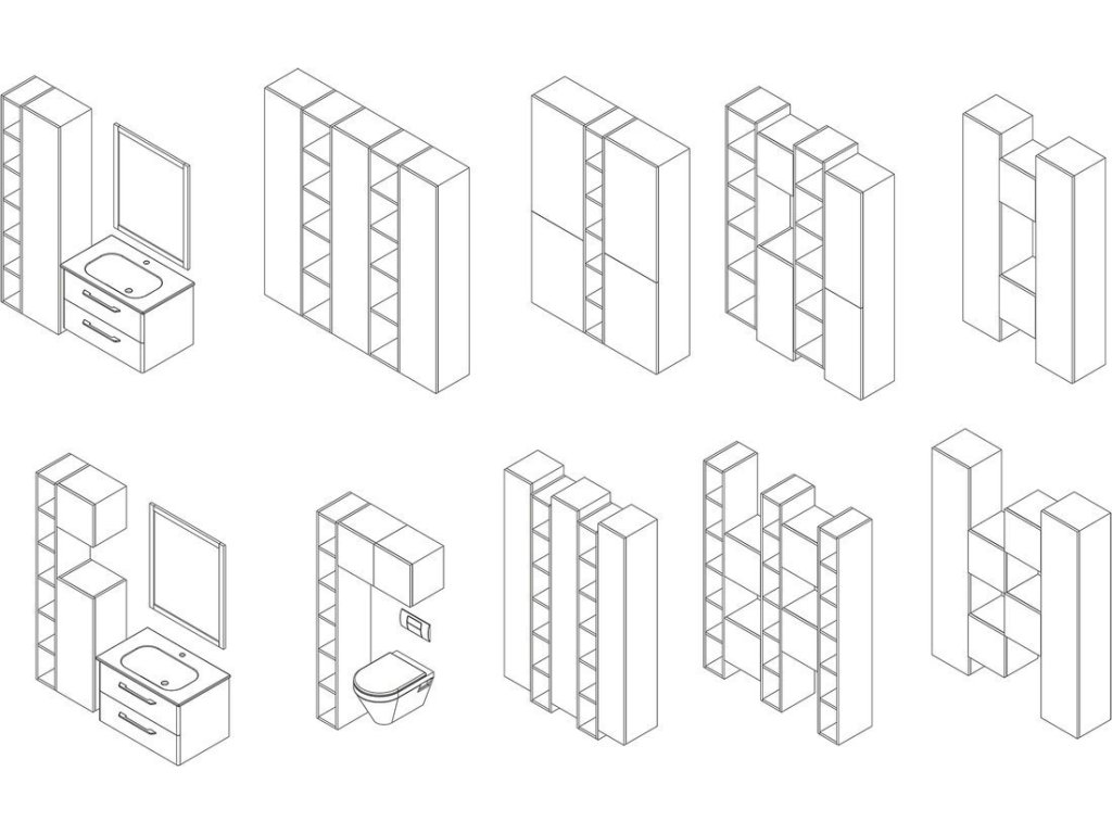 Charakteristickým rysem série doplňkových skříněk ESPACE je variabilita díky široké nabídce rozměrů jak dvířkových, tak otevřených skříněk. Série ESPACE byla navržena pro kombinaci s většinou umyvadlových skříněk z naší nabídky, avšak skříňky naleznou využití i v jiných prostorách než je koupelna (obývací pokoj, předsíň apod.).