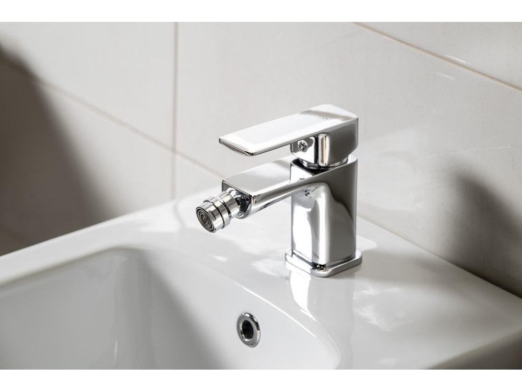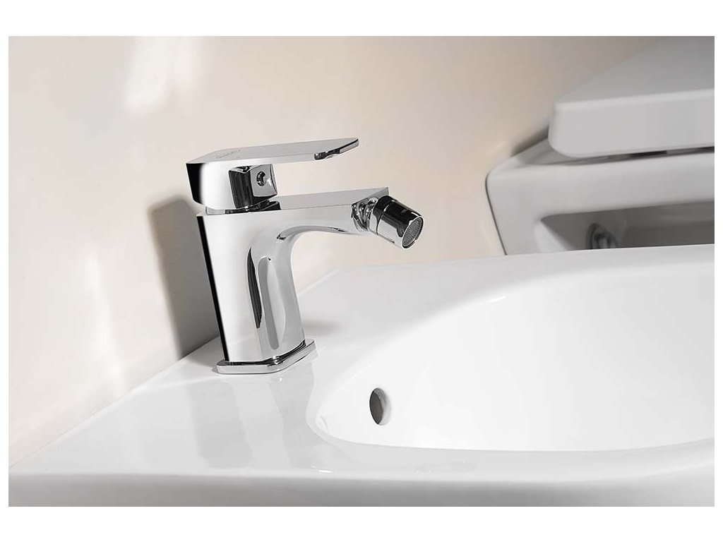 Série pákových baterií FACTOR je charakteristická kombinací hranatých tvarů a zaoblených rohů.