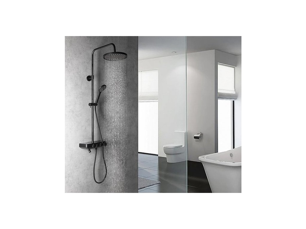 FARRAO sprchový sloup s baterií a napouštěním, černá mat