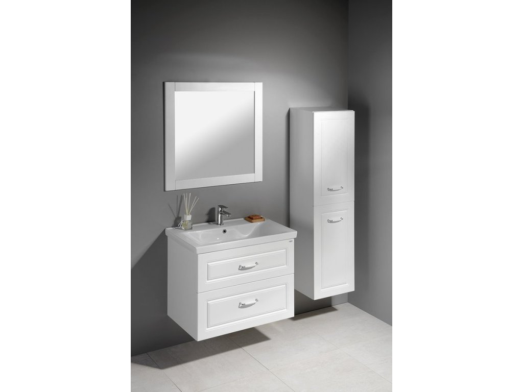 FAVOLO je klasická série koupelnového nábytku s decentně frézovaným dekorem na čelech zásuvek a dvířkách v bílém matném provedení. Umyvadlové skříňky lze kombinovat se zrcadly a doplňkovými skříňkami ve stejném stylu a odstínu. Elegantní umyvadla podtrhují vzhled celé série, která se hodí nejen na chalupu či do činžovního domu ze začátku 20. století.