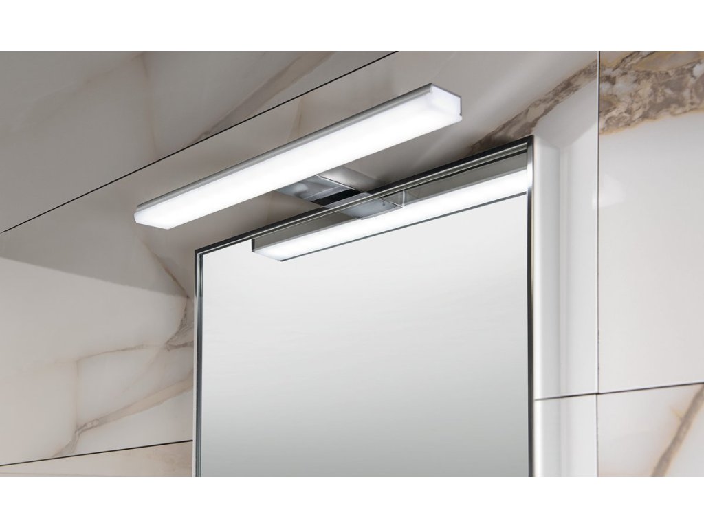 Moderní svítidlo bez LED driveru, připojuje se přímo na 230 V pomocí spojovacího boxu s ochranou IP44. Standardně se dodává s držákem za rám zrcadla nebo na zeď. Součástí balení je i univerzální držák, pomocí kterého lze instalovat svítidlo na galerku nebo přímo na zrcadlo (max. tloušťka zrcadla je 6 mm).