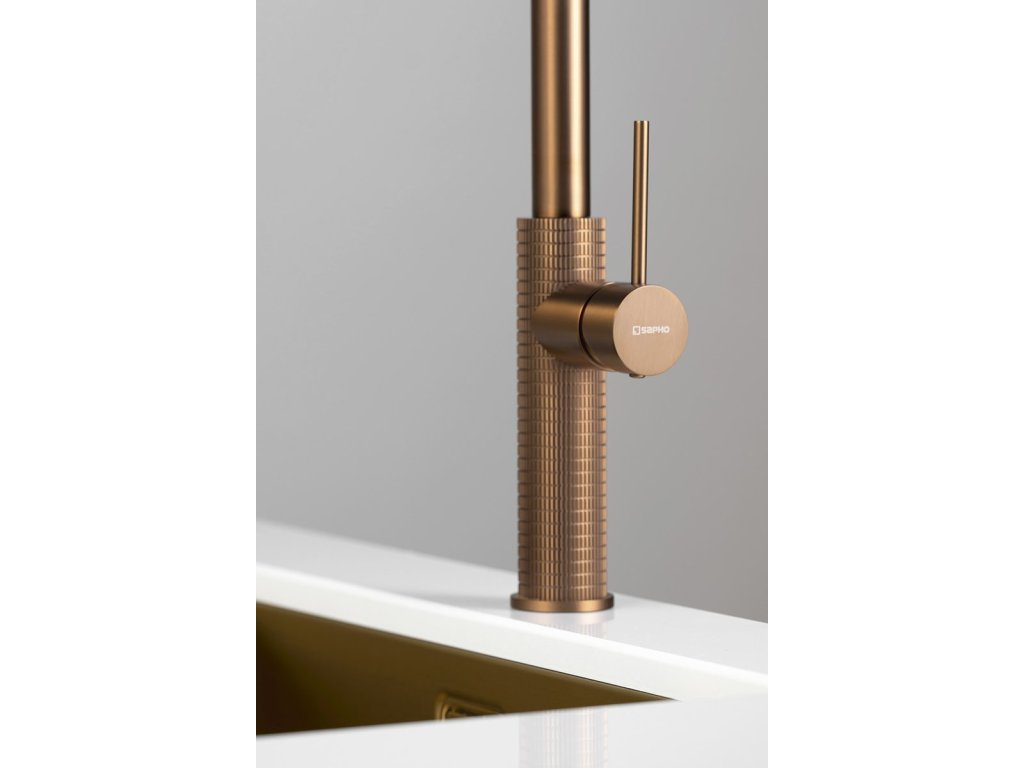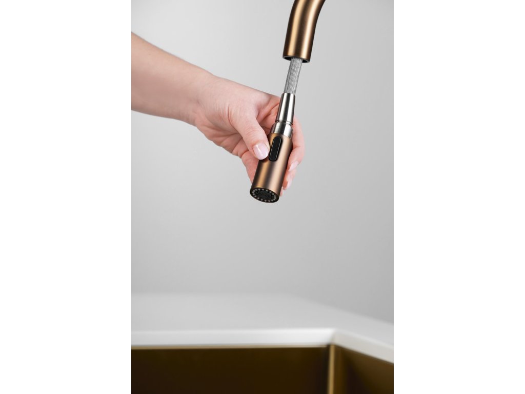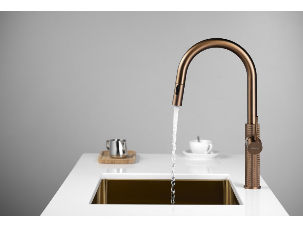 FLAWO stojánková dřezová baterie s výsuvnou sprškou, měď mat