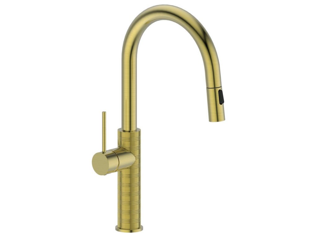 FLAWO stojánková dřezová baterie s výsuvnou sprškou, zlato mat