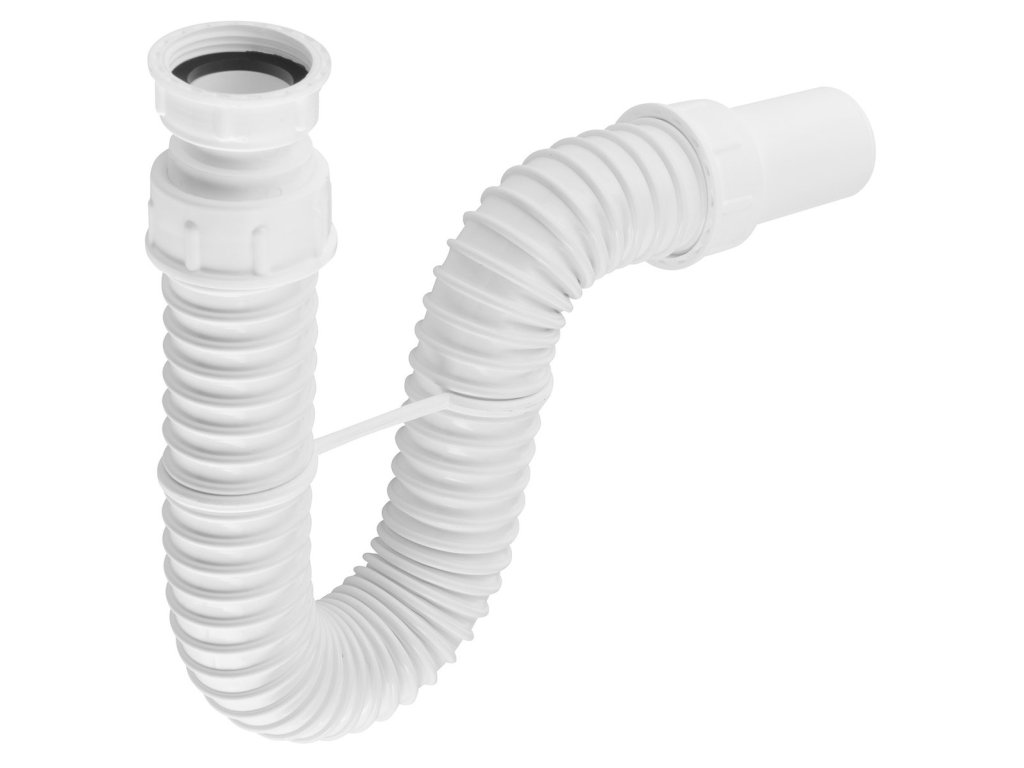 Flexibilní umyvadlový sifon je vyroben z pevného plastu. Seříznutím lze zkrátit na požadovanou délku. Díky hladké vnitřní stěně nedochází k usazování nečistot.