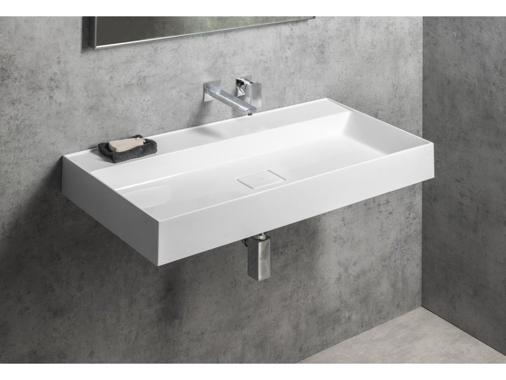GODIVA umyvadlo, litý mramor, 96x44cm, bez otvoru, bílá