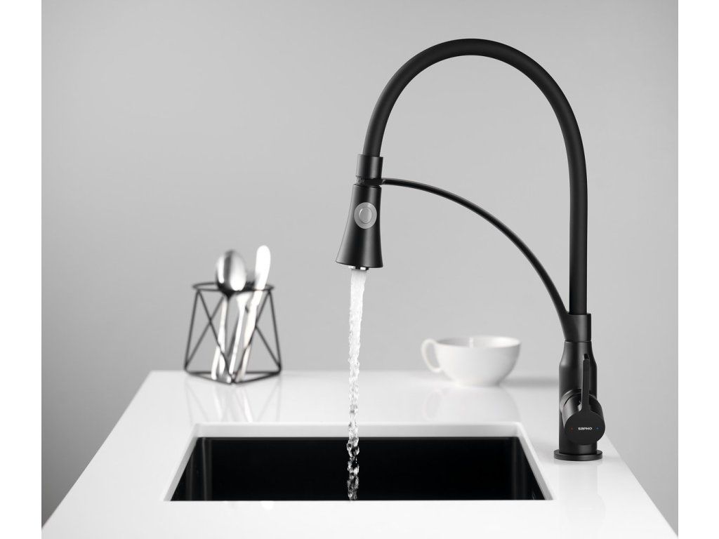 HEBE stojánková dřezová baterie se sprškou, černá mat