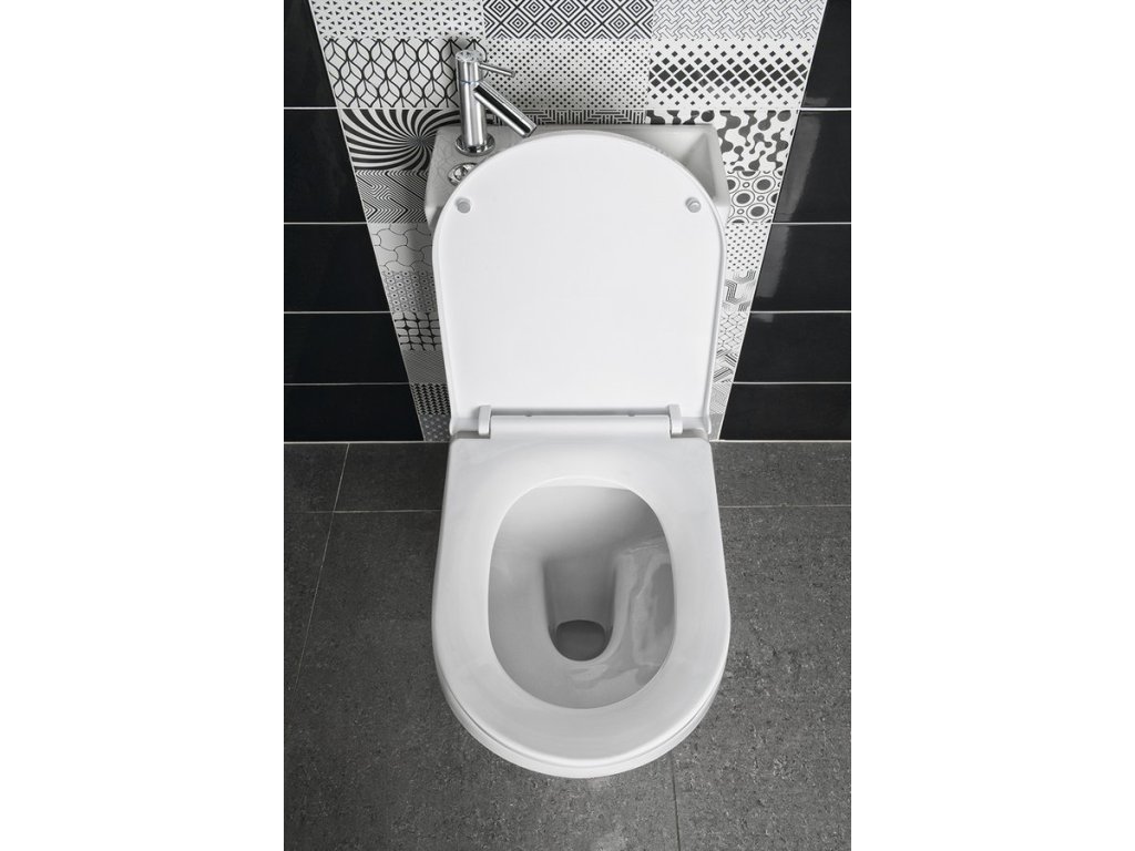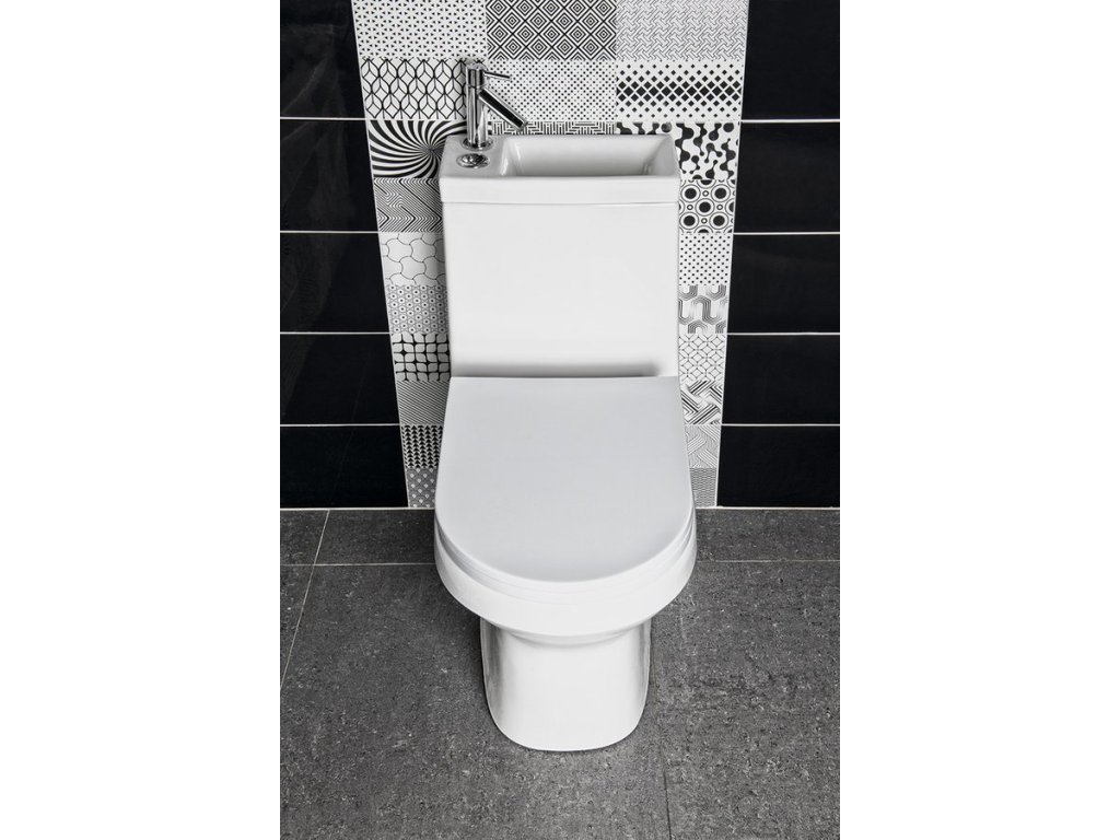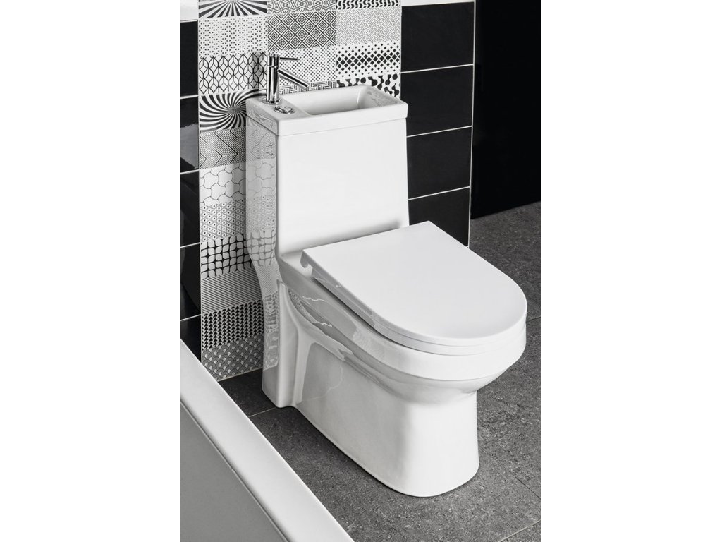 WC HYGIE je ideální variantou do malých místností, kde je potřeba ušetřit prostor. Umístěním umývátka na nádržce dochází k šetření vody, která při mytí rukou protéká do nádržky, až do jejího úplného napuštění. V případě plné nádržky odtéká voda do mísy.