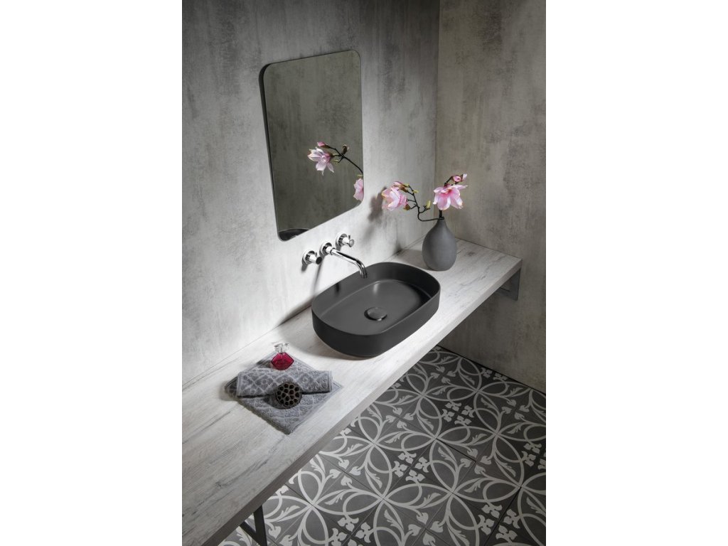 INFINITY OVAL keramické umyvadlo na desku, 55x36cm, antracit