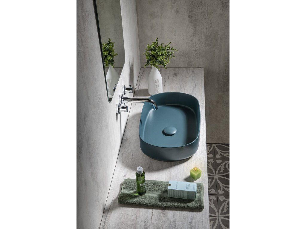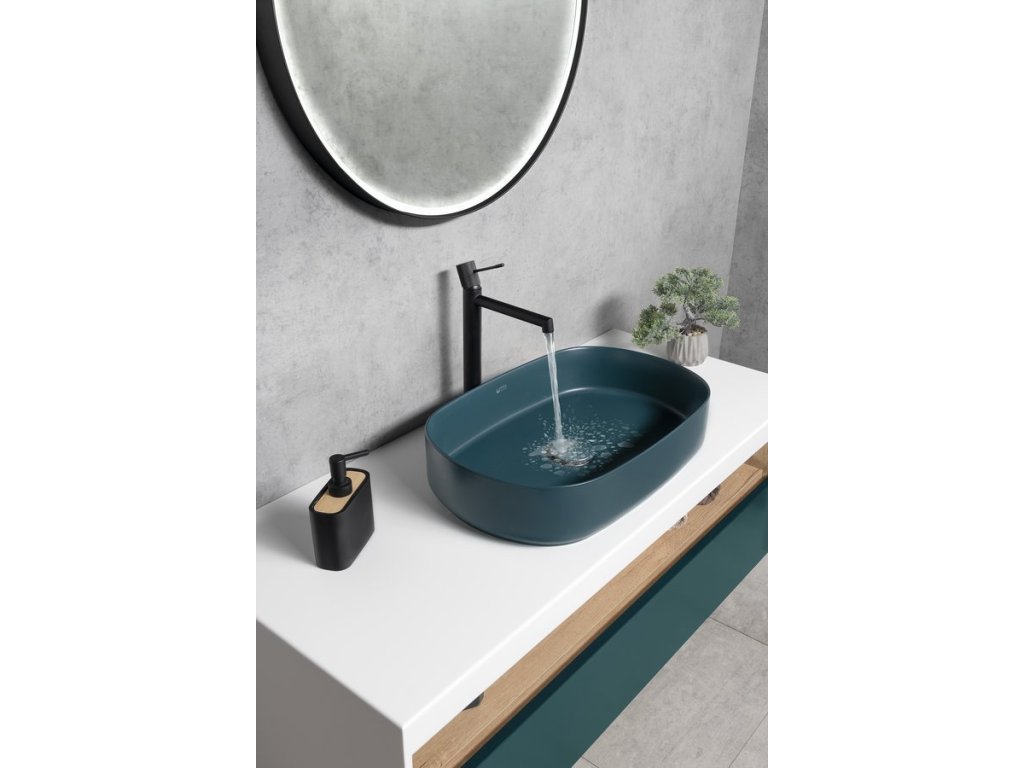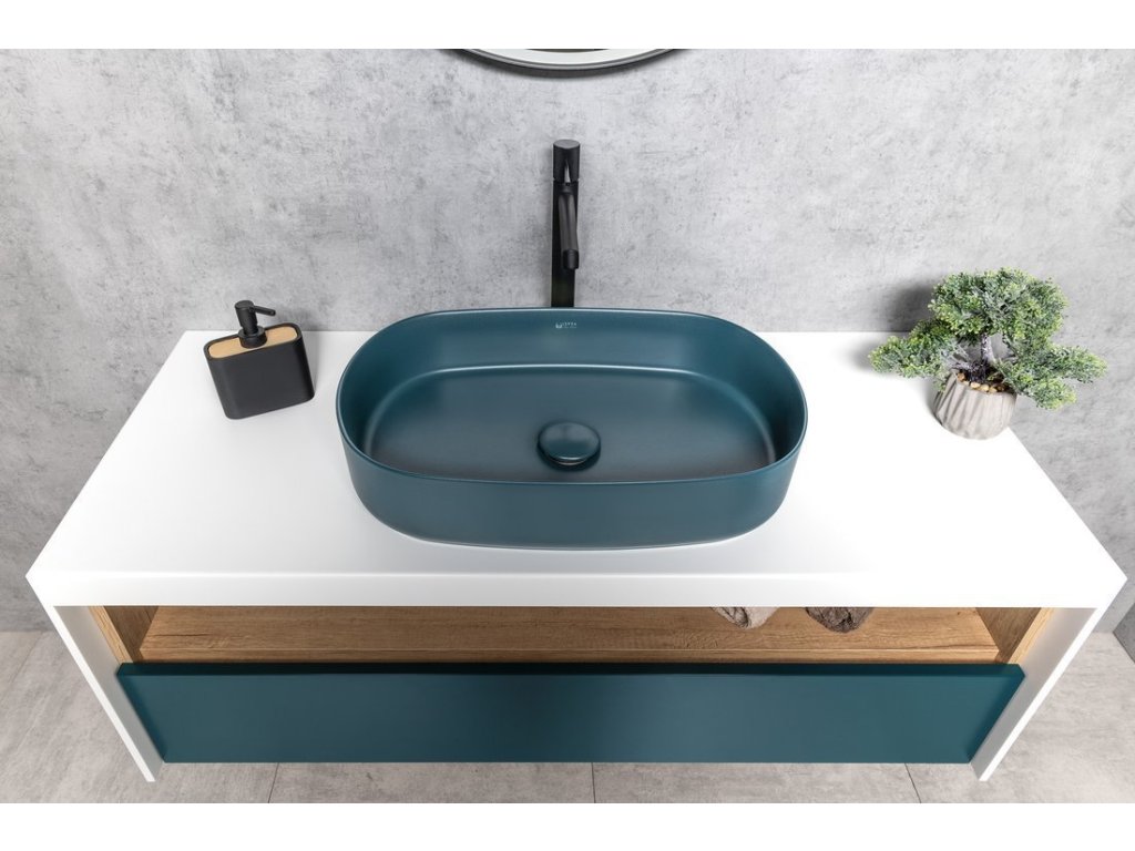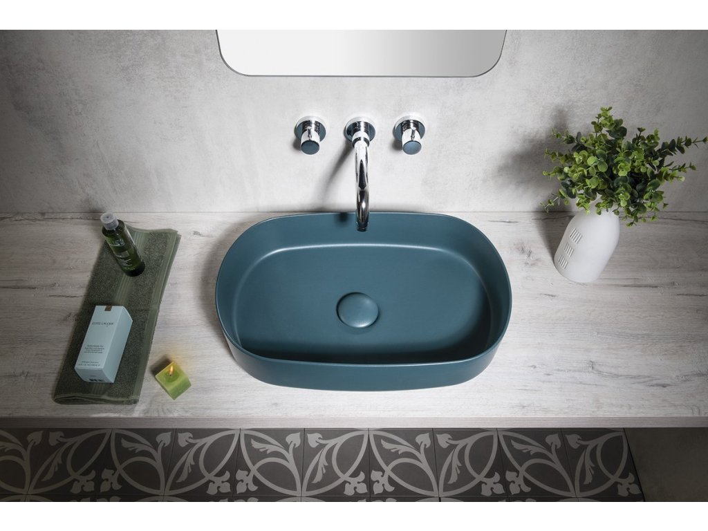 INFINITY OVAL keramické umyvadlo na desku, 55x36cm, zelená petrol