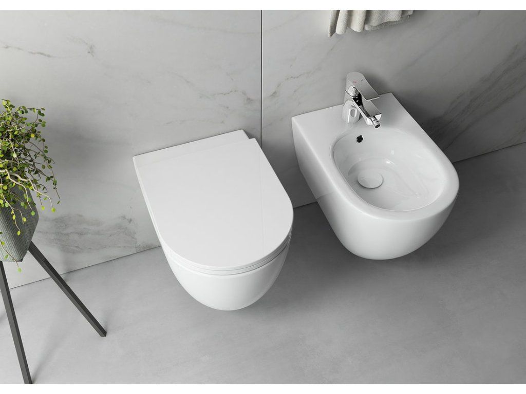 Rimless (NoRim) – toalety bez tradičního oplachového kruhu. Hladký povrch bez dutin a záhybů. Oplachová voda vytéká rozdělovačem vody pouze ze zadní části WC mísy a díky speciálnímu tvaru keramiky dokonale opláchne vnitřní prostor. Výhodou je snadná údržba a čištění WC mísy.
