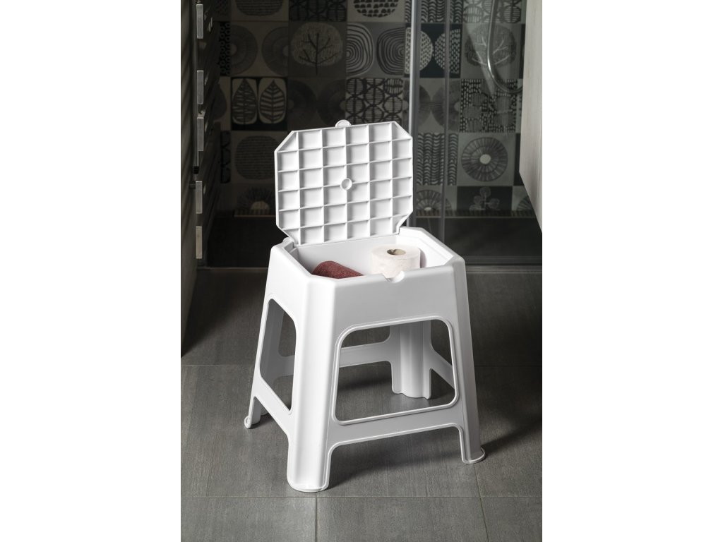 Koupelnová stolička s úložným prostorem, bílá