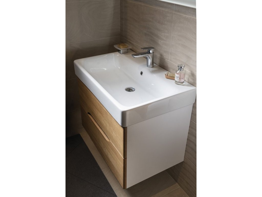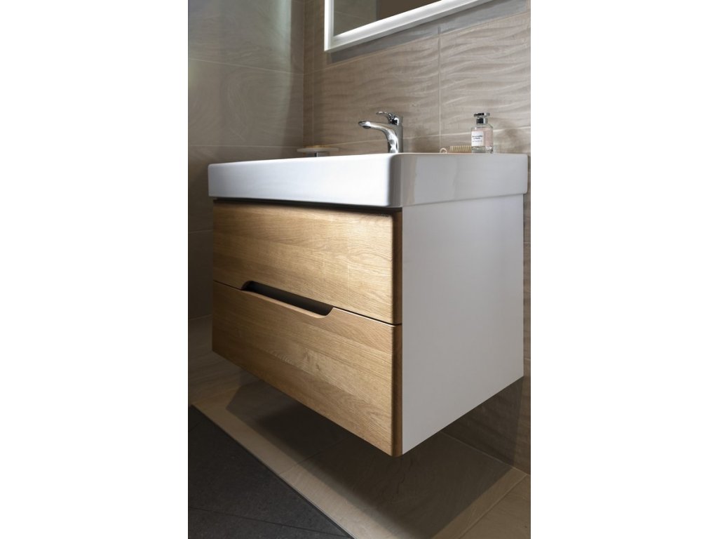 Koupelnový set MEDIENA 80, bílá mat/dub natural