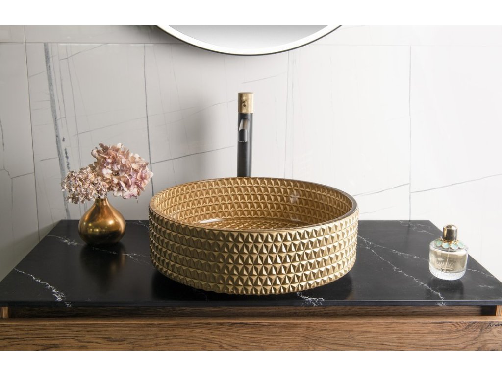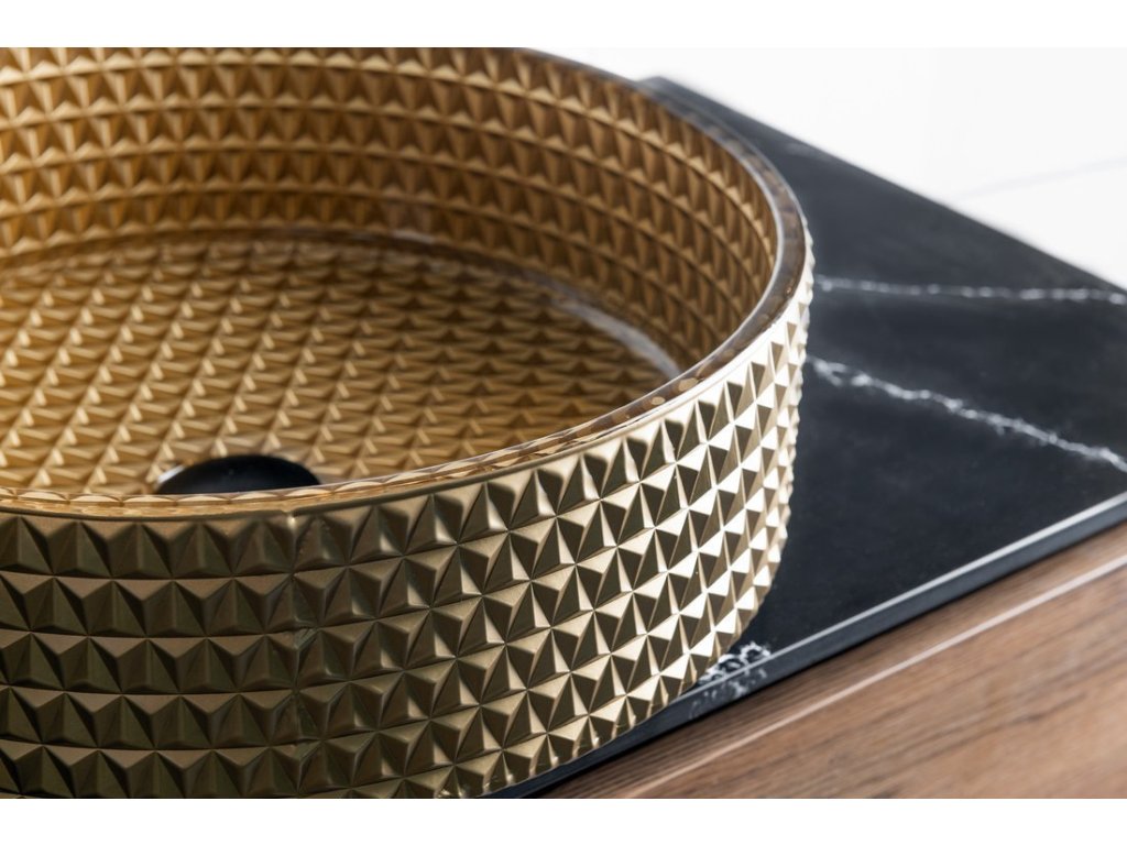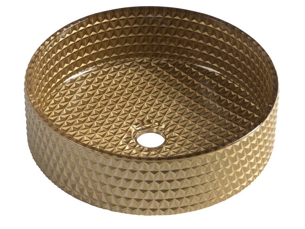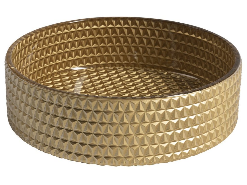 MARAGUA skleněné gravírované umyvadlo na desku Ø 39,5cm, zlatá