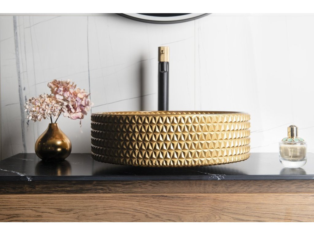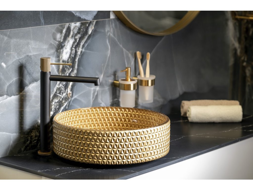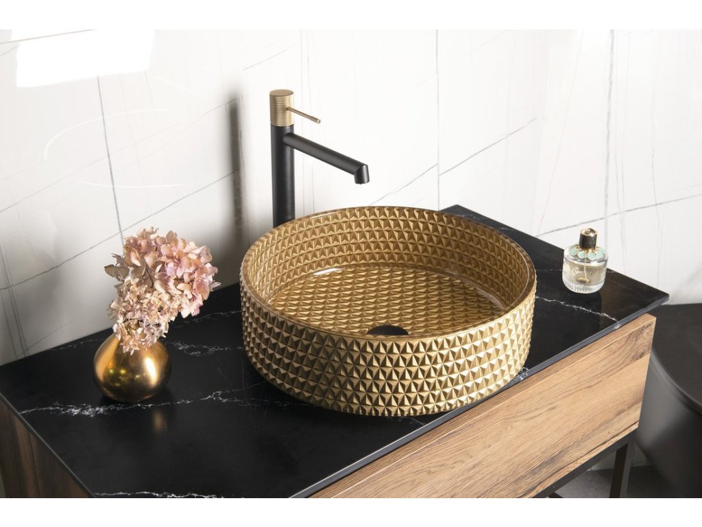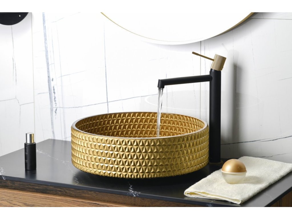 MARAGUA skleněné gravírované umyvadlo na desku Ø 39,5cm, zlatá