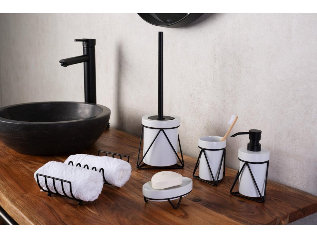 Koupelnové doplňky řady MILA z bílé keramiky doplněné černou ocelovou konstrukcí působí svěžím dojmem. Sérii doplňuje držák toaletního papíru kombinovaný s praktickou poličkou. Perfektně vyniknou v moderní i industriálně laděné koupelně.