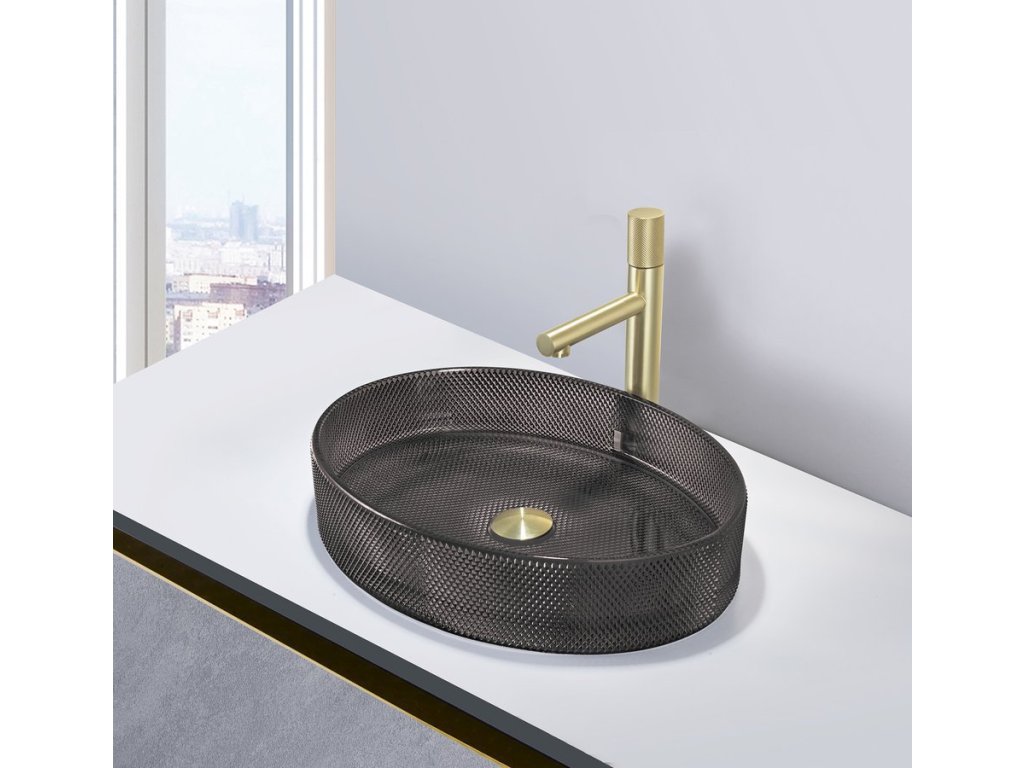 NOBAL skleněné gravírované umyvadlo na desku, 49x38 cm, černá