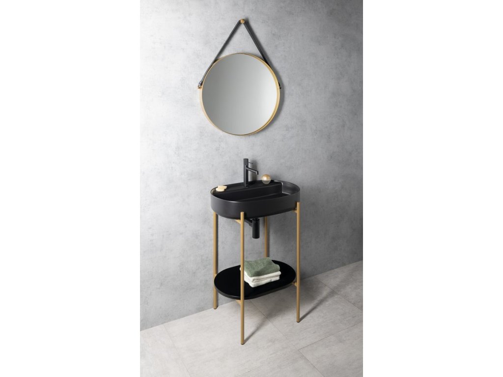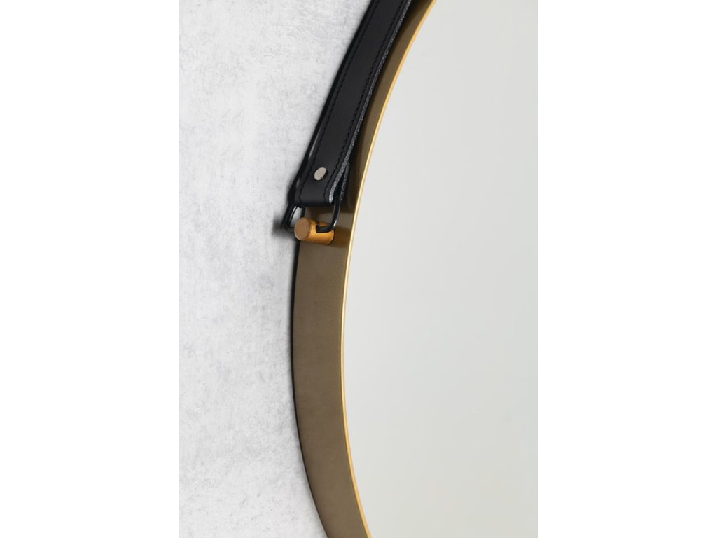 ORBITER kulaté zrcadlo s koženým páskem ø 60cm, zlato mat