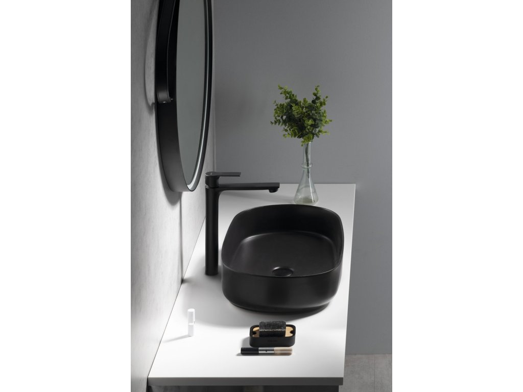 PAX stojánková umyvadlová baterie vysoká, prodloužená hubice, černá mat