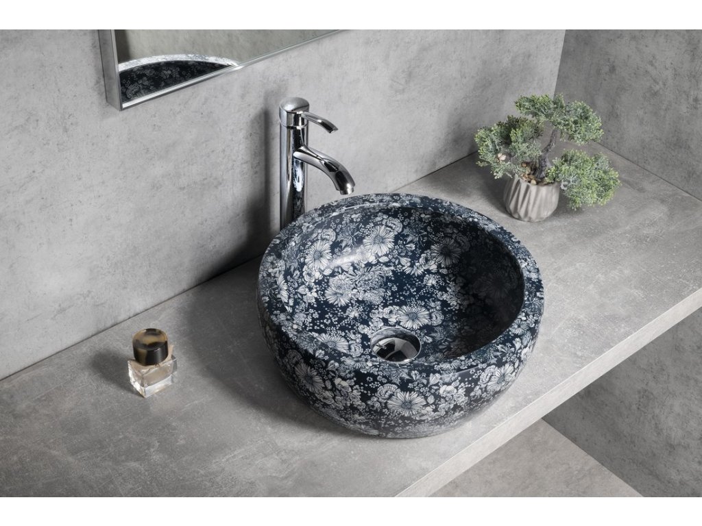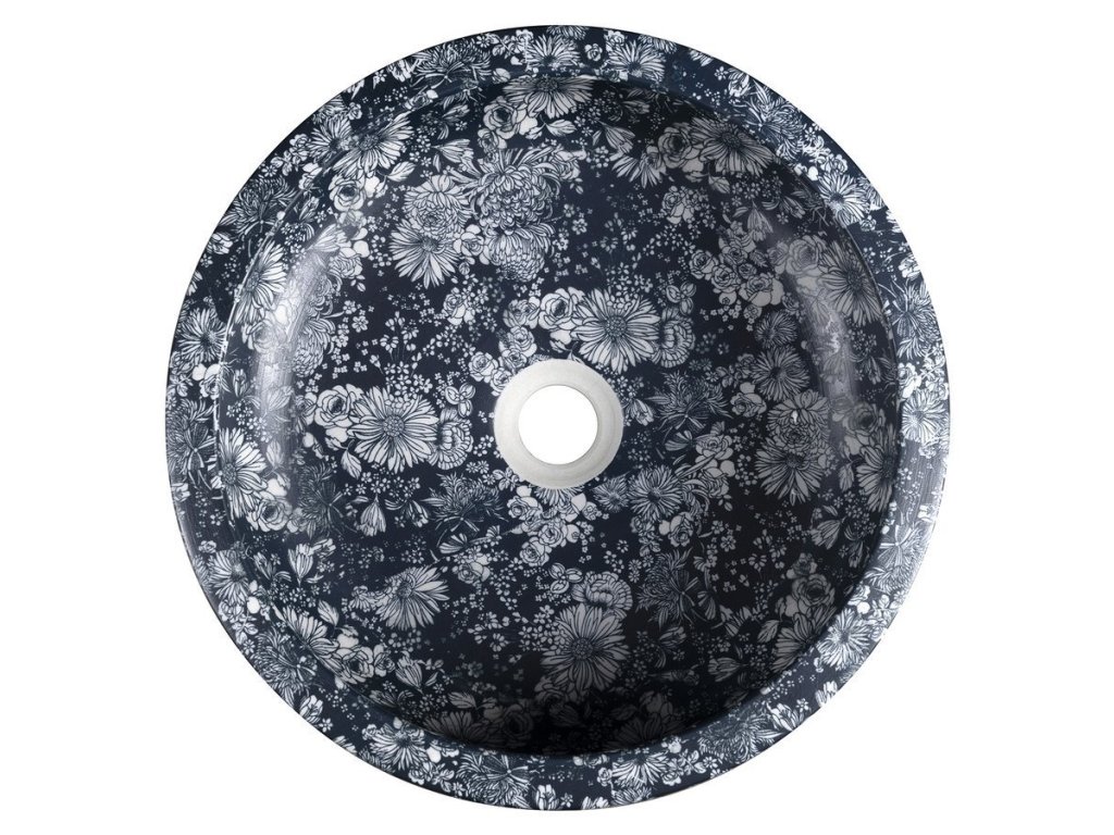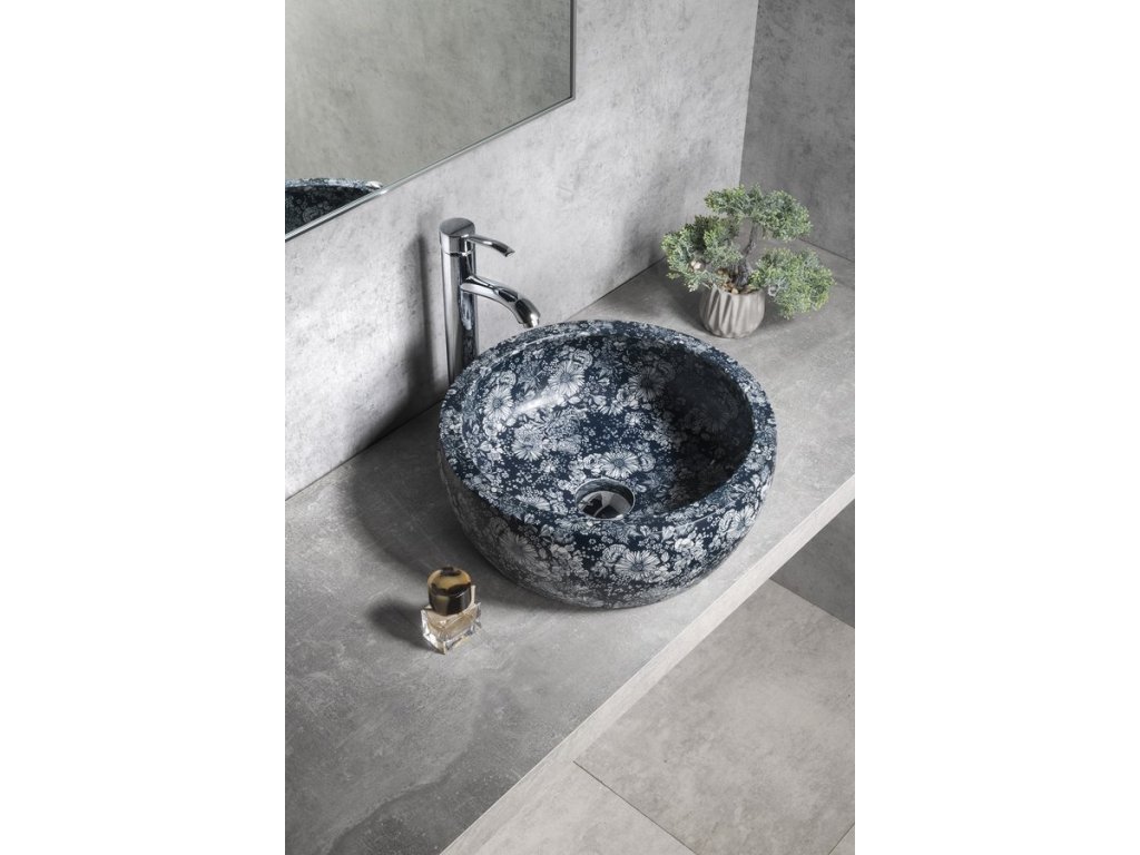 PRIORI keramické umyvadlo na desku, Ø 41 cm, modré květy