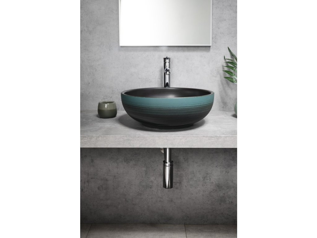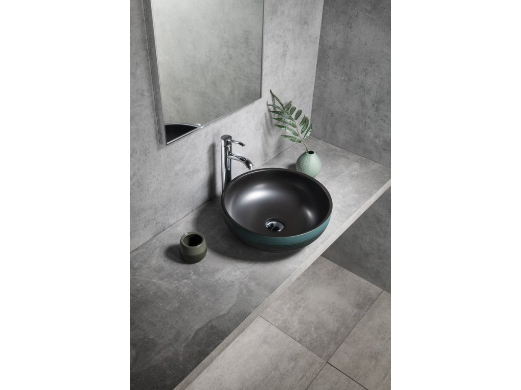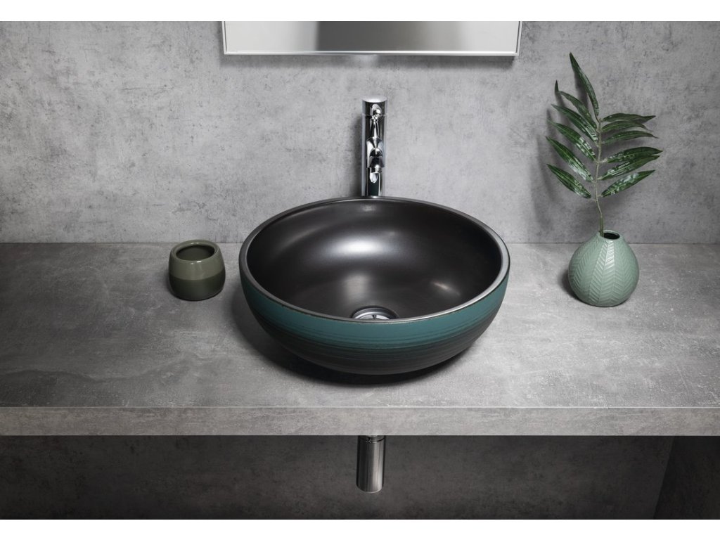 PRIORI keramické umyvadlo na desku, Ø 41cm, černá/zelená