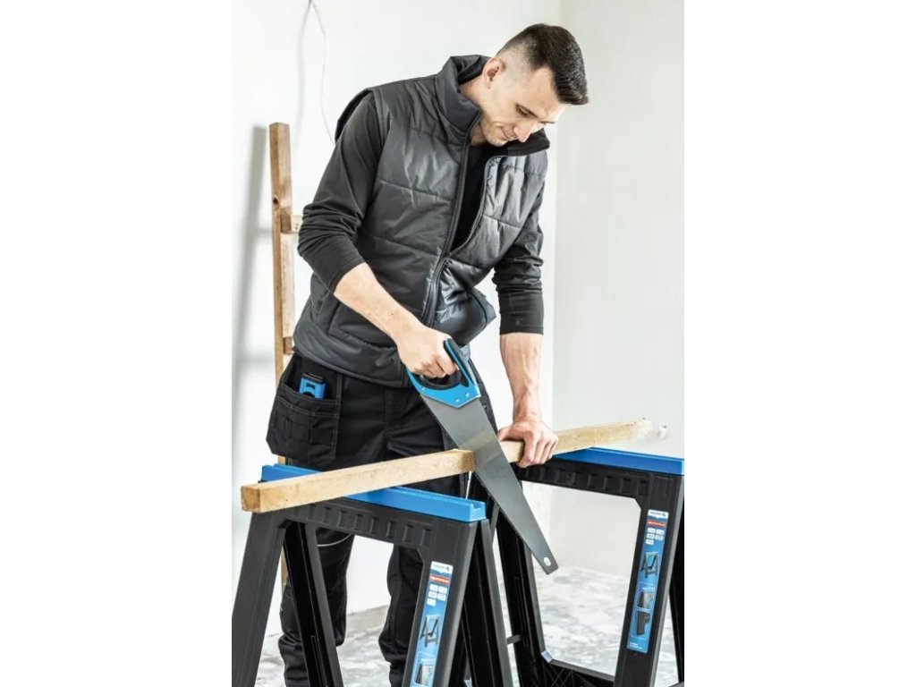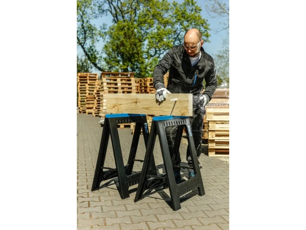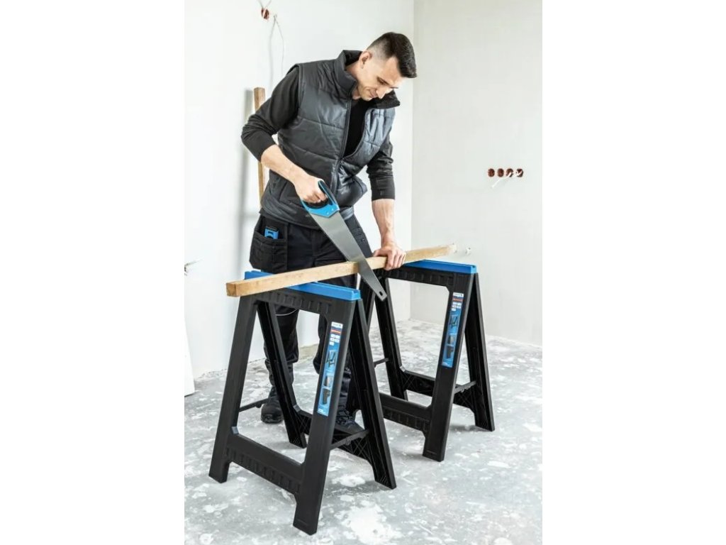 Dílenská koza je perfektní jako podpěra při řezání materiálu, montáži konstrukcí nebo jako základ pro vytvoření provizorního pracovního stolu. Ve dvojici vytvoříte během pár vteřin stabilní pracovní plochu.