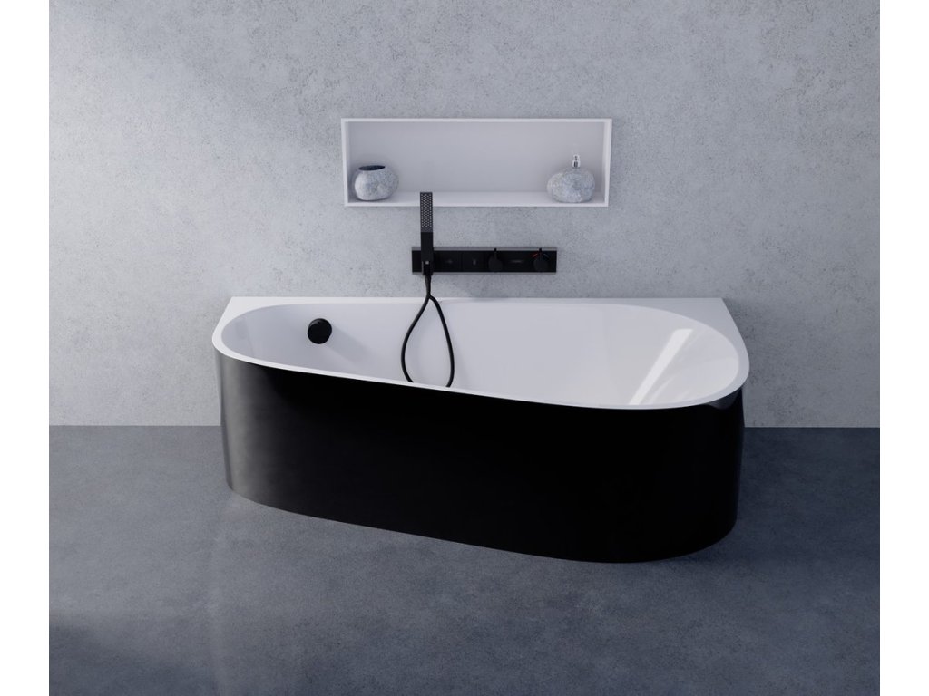 PROJEKTA DR MONOLITH nástěnná stojící vana 156x77x60cm, bílá/černá