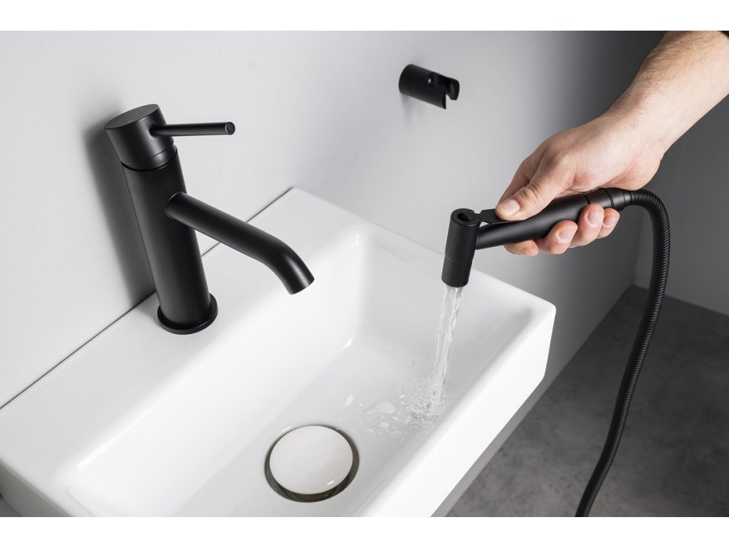 RHAPSODY stojánková umyvadlová baterie s bidetovou sprchou, černá