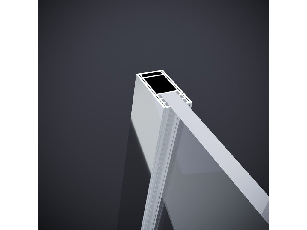 - Dvojdílné sprchové dveře do prostoru (pevná a posuvná část) s hliníkovými profily v chromu nebo matně černé povrchové úpravě