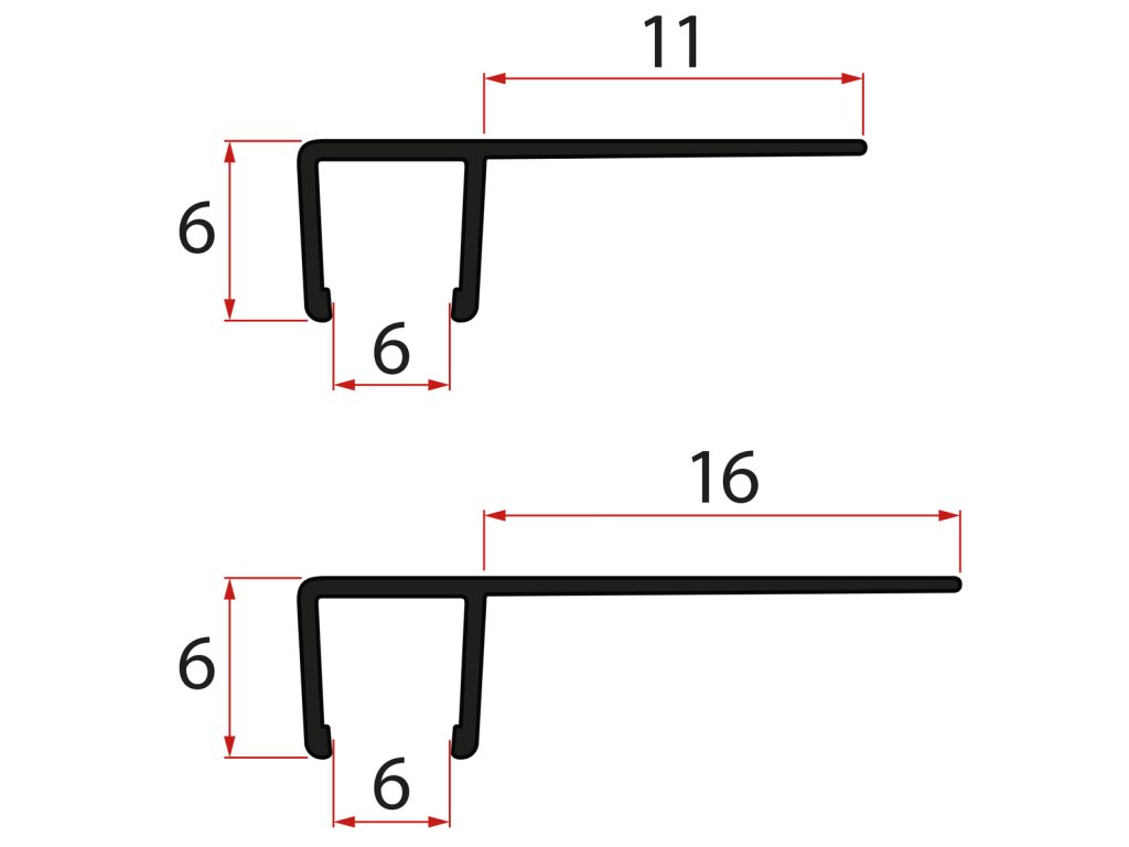 Set svislých těsnění pro sklo 6/6mm, 1900mm, černá