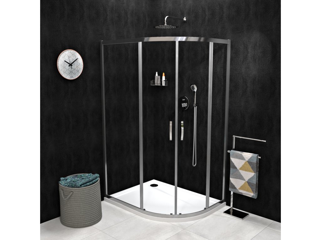 - Čtvrtkruhové zástěny a čtvrtkruhové zástěny s prodlouženou stěnou s posuvnými dveřmi