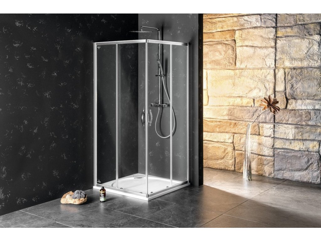 - Čtvercové a obdélníkové zástěny s rohovým vstupem vytvoříte spojením dvou posuvných dveří pro rohový vstup