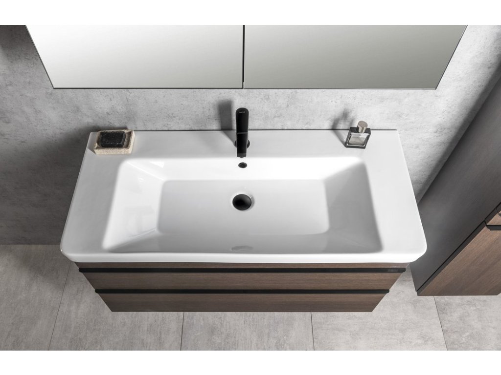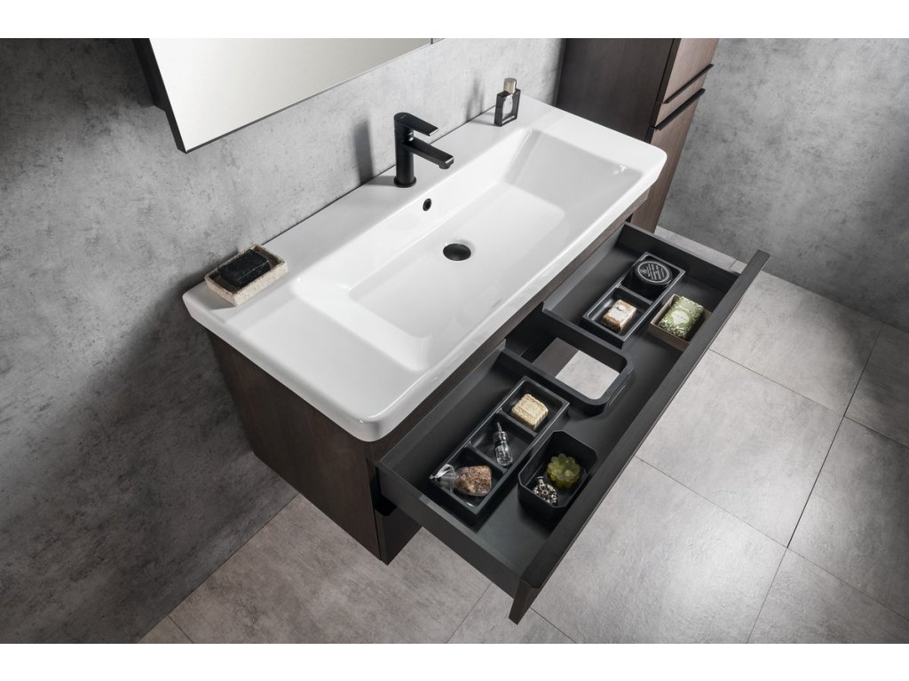 Série SITIA nabízí moderní vzhled díky tenké úchytce v matné bílé nebo černé barvě, umístěné po celé délce hrany zásuvek či dvířek. Použitím keramických umyvadel THALIE vytvoříme nadčasový koupelnový nábytek. Zásuvky jsou vybaveny výsuvy s pomalým dojezdem a automatickým dovřením, dvířka mají kování s tlumeným dovíráním. Horní i spodní zásuvky lze doplnit organizérem nebo miskami LINDO pro uložení předmětů každodenní potřeby. Série dále nabízí 2 rozměry doplňkových skříněk ve stejném designu.
