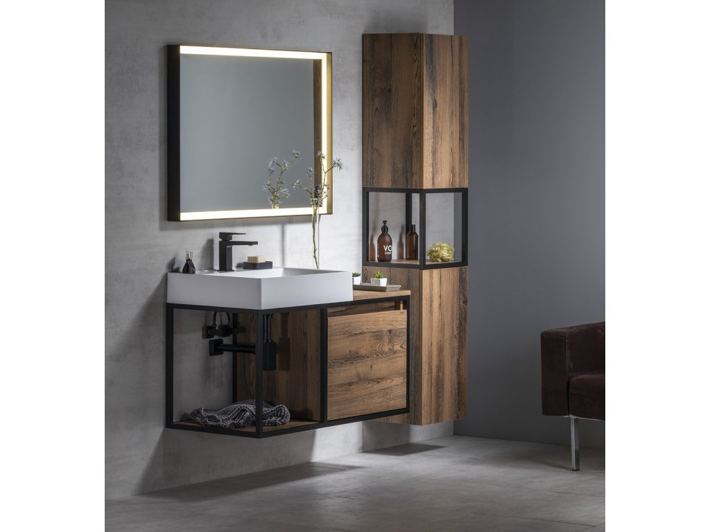 Konstrukce ze série SKARA jsou vhodné do koupelen zařizovaných v moderním i industriálním stylu. Skvěle je doplní vysoká skříňka SKARA ve stejném dekoru nebo skříňky a zrcadla TREOS s rámem v dřevěném dekoru. Perfektní je i kombinace s podsvíceným zrcadlem SORT v černém hliníkovém rámu.
