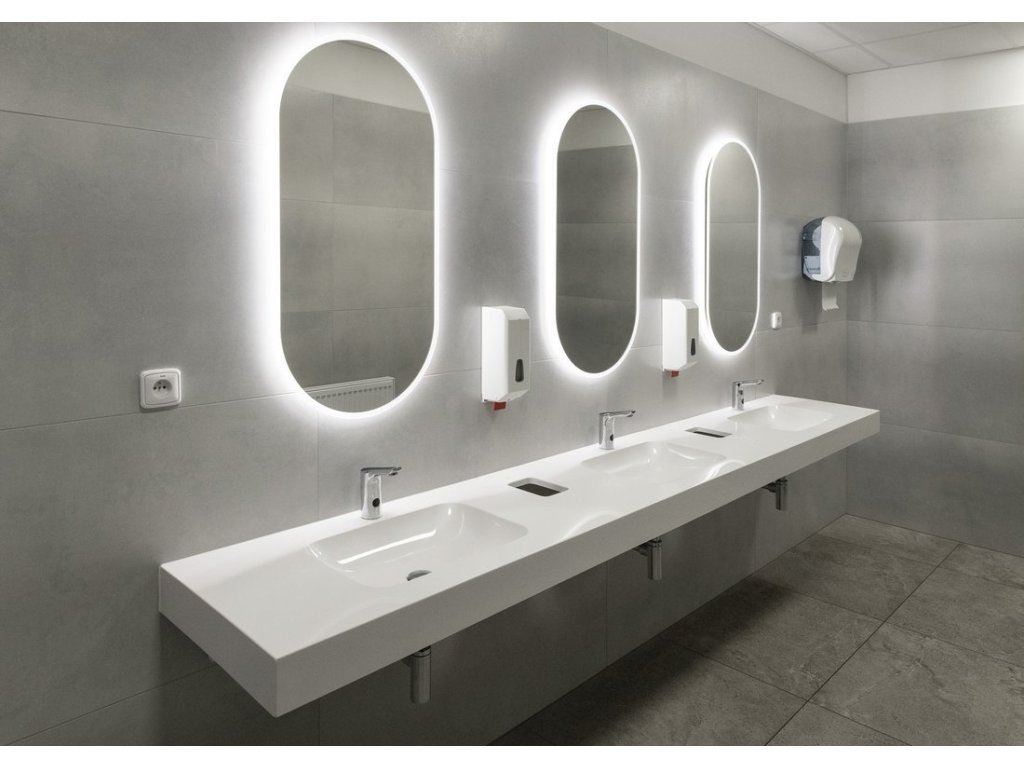 Kolekce SKIN pro veřejné prostory zahrnuje kompletní výběr koupelnových doplňků, které se vyznačují moderním designem. Doplňky v barevném provedení černá a písková jsou vyrobeny z recyklovaného plastu.