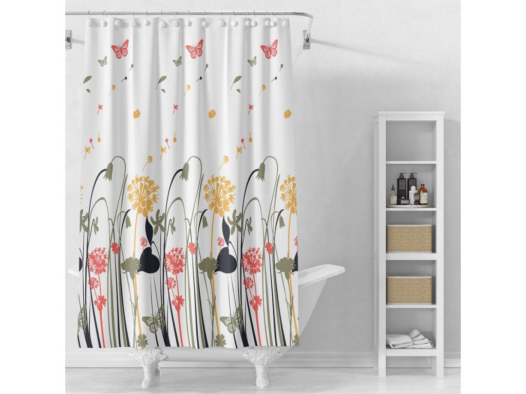 Sprchový závěs 180x180cm, vinyl, bílá, barevné kytky